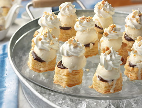 Using a mini ice cream scoop, spoon about 1 tablespoon ice cream onto each pastry cup, rinsing the scoop with hot water after each.