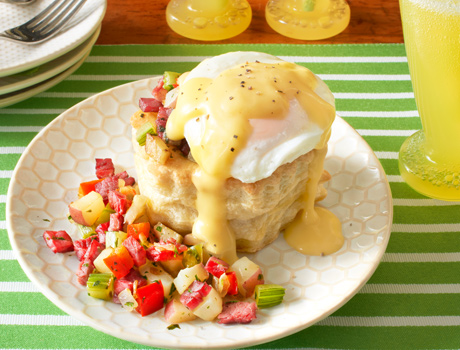 Spoon the potato mixture into the pastry shells. Top each with 1 egg. Spoon the soup mixture over the eggs. Serve immediately.