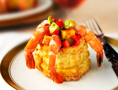 Divide the salsa mixture among the pastry shells. Arrange 4 shrimp in each pastry shell.